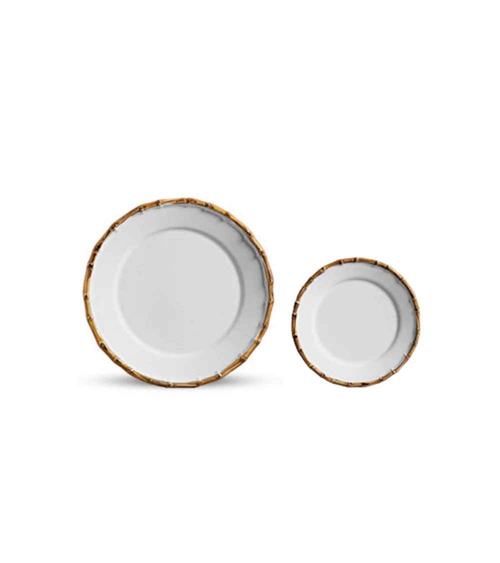 Adicione um toque de elegância natural à sua mesa com nossos pratos com borda de bambu , disponíveis em conjuntos de jantar e sobremesa . Feitos de porcelana 100% premium e cuidadosamente pintados à mão , cada prato apresenta uma borda lindamente detalhada inspirada no bambu. Vendidos em conjuntos de 10 unidades , esses pratos combinam o charme artesanal com um design atemporal — perfeitos para elevar as refeições do dia a dia ou ocasiões especiais.